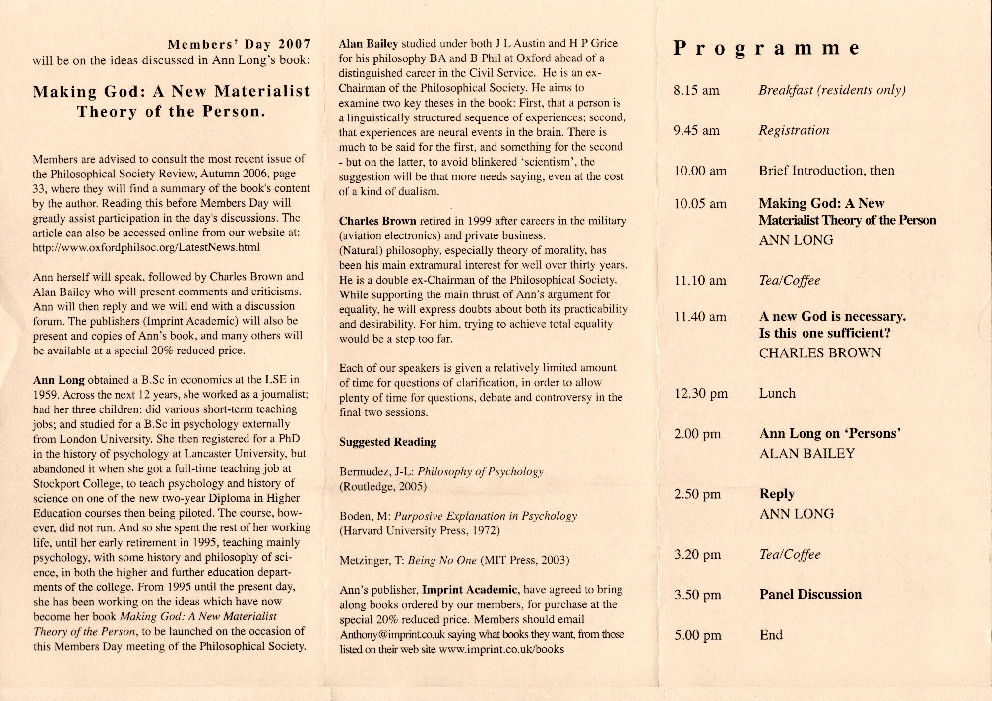 - Ann Long: Making God: A New Materialist Theory of the Person